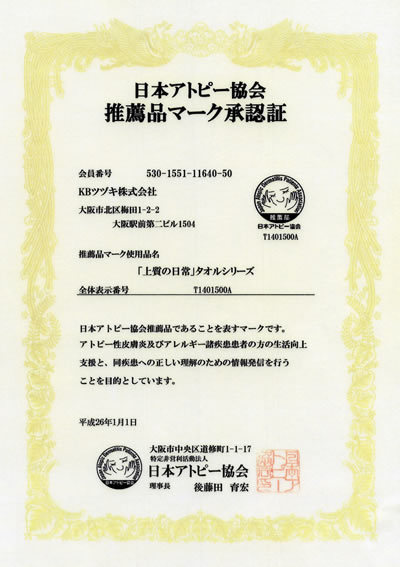 日本アトピー協会がアトピー・アレルギー患者さんにとって有益であろう様々な商品に対して発行しています。