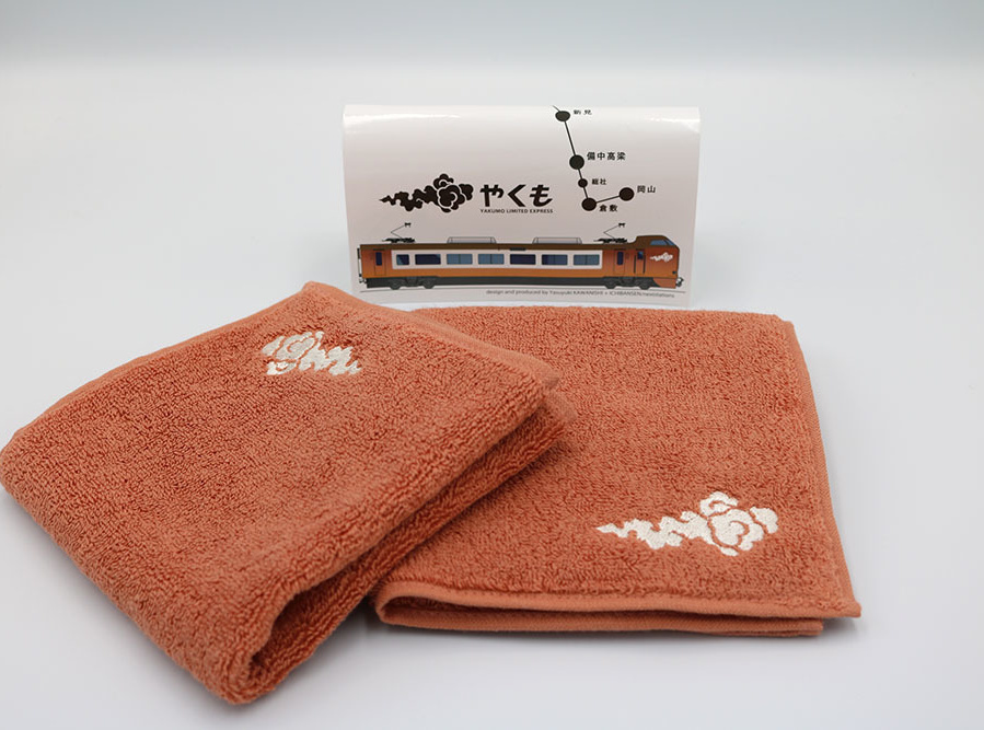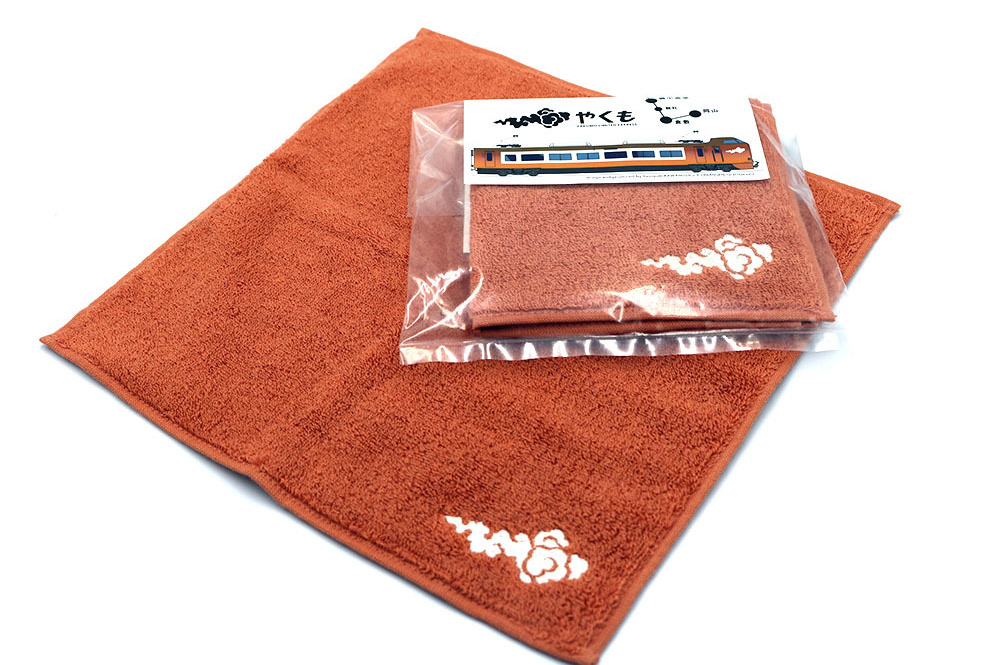 この度、特急やくも号の運行を記念した、ハンカチタオルの販売を開始しましたのでご案内させていただきます。