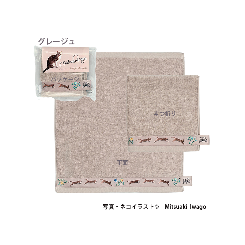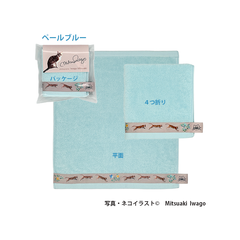 ハンカチタオルより少し大きめのハンドサイズ(33cmx36cm)です。薄手のタオルなので、ご自宅やお出かけ先でも嵩張らず様々なシーンでお使いいただけます。